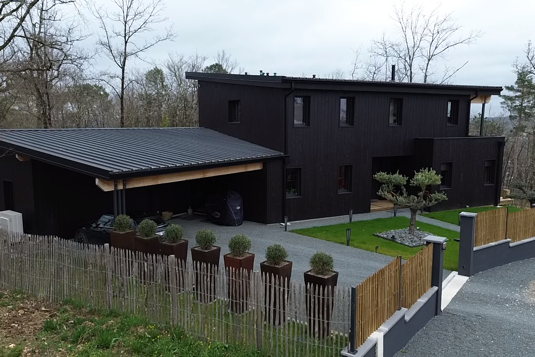 Surface : 200.00 m² + 42 m² – Bardage : Epicéa Saturateur bois brulé